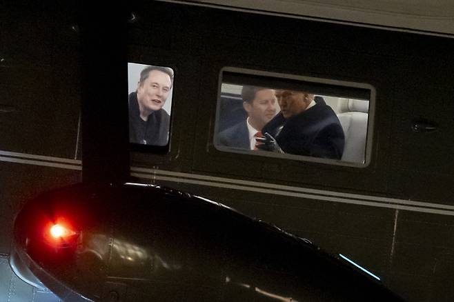 | 트럼프·머스크 ‘브로맨스’ 과시 19일(현지시간) 미국 워싱턴 백악관 남쪽 잔디구역에 도널드 트럼프 미국 대통령(오른쪽)과 일론 머스크 테슬라 최고경영자(왼쪽) 등이 탑승한 대통령 전용 헬기 ‘마린 원’이 착륙하고 있다. 워싱턴=AP연합뉴스 |