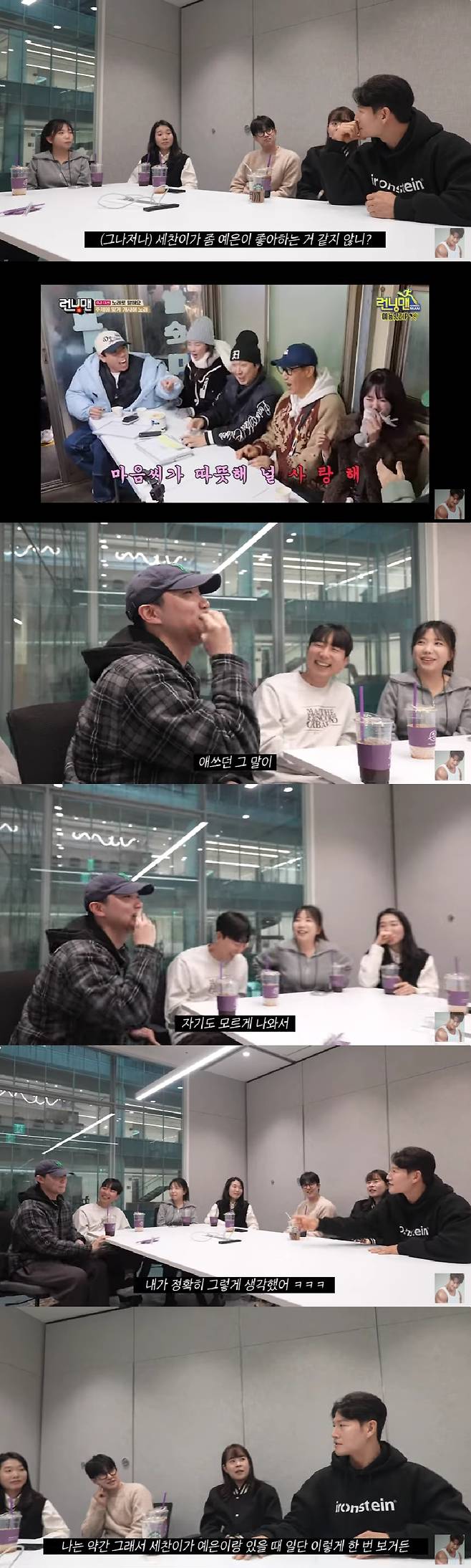 이어 김종국은 "세찬이가 주눅들까봐 얘기를 안 했다. '사랑해'도 그렇고"라며 '런닝맨'에서 양세찬이 주제어로 지예은이 등장하자 '널 사랑해'라고 고백 개사했던 당시를 언급했다.