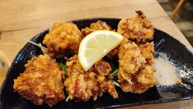 연어회와 치킨 가라아게, 문어튀김 같은 재료 본연의 품질과 맛이 중요한 기본적인 메뉴로 이곳의 요리를 가늠했다. 우리나라 이자카야에서도 쉽게 만날 수 있는 음식인데, 본토의 맛과 비교하는 즐거움이 있다.