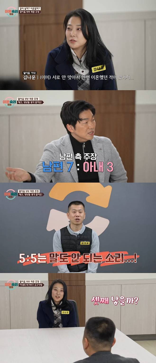 이후 진행된 최종 조정에서 아내는 "서로 안 맞아서 한 번 이혼한 적이 있다. 그래서 지금 많이 망설여지고 고민을 많이 하고 있다"며 여전히 이혼에 대한 생각이 있음을 밝힌 반면, 남편은 "앞으로 잘 살아보려고 하고 있다"고 이혼 의사가 없다고 말했다.