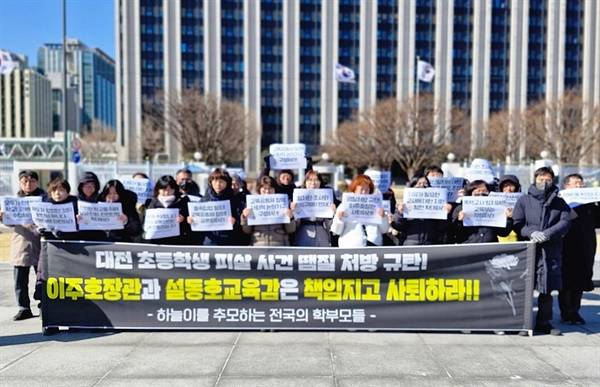 하늘이를 추모하는 전국 학부모들은 20일 오전 정부서울청사에서 기자회견을 열고 "하늘이 살해 사건의 본질 파악이 되지 않은 채 성급히 입법을 추진하는 것은 교육공동체 전체에 새로운 불안과 혼란을 초래할 것"이라며 철저한 진상조사와 책임 규명을 먼저 선행하고 정신질환에 대한 사회적 편견과 혐오를 조장하는 대책 발표 중단을 촉구했다.