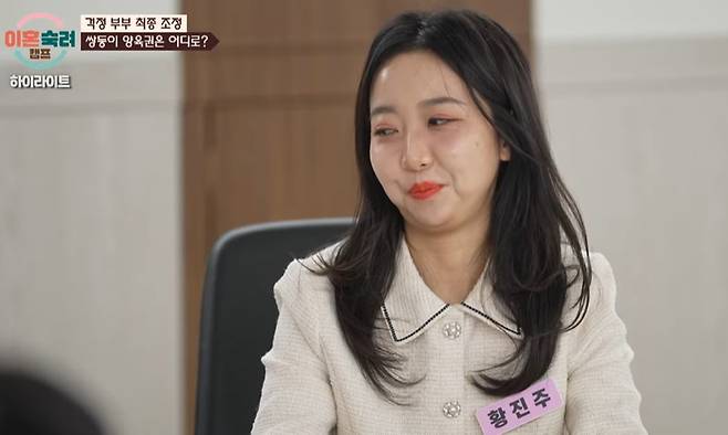이어 부부는 양육권을 두고 치열한 다툼을 벌였다. 황진주 씨는 자신의 경제력을 어필하며 번역 등은 재택근무 등으로 해결할 수 있다고 주장했다. 이에 서장훈은 "어머니가 아이를 봐줄 때 왜 일을 하지 않았나"라고 물었고, 그는 "다른 일을 알아보고 있다"라고 동문서답했다.