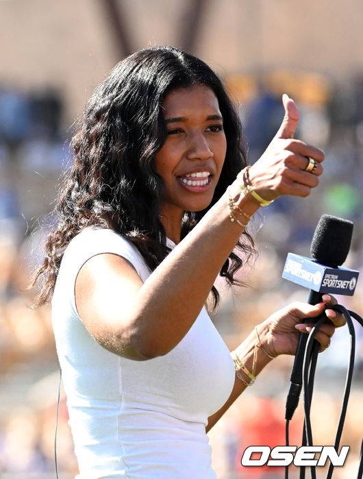 경기에 앞서 스포츠넷 LA 리포터인 키어스텐 왓슨이 인터뷰를 준비하고 있다. 2025.02.21 / sunday@osen.co.kr