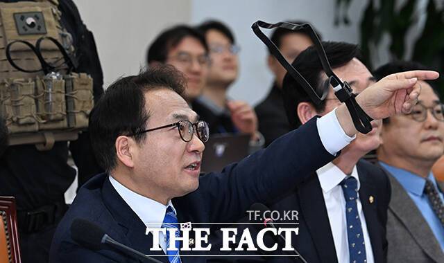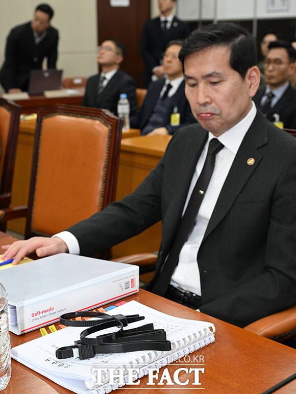 직접 케이블타이 수갑 묶은 박선원 "타이는 국회의원 끌고 가기 위한 것" [TF사진관]