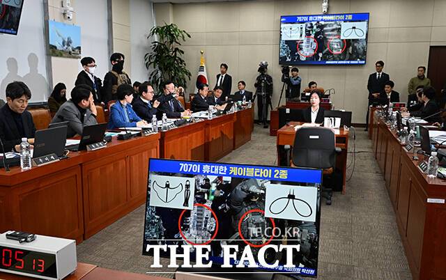 박 의원은 707 특임대가 계엄 당시 국회에 반입한 '케이블타이 수갑'을 들어 보이며 "이것이 바로 707 특임대가 가지고 있는 코브라 케이블 타이"라며 직접 손목에 타이를 묶었다.