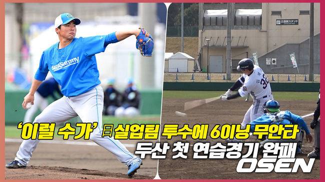 ‘이럴 수가’ 日실업팀 투수에 6이닝 무안타, 두산 첫 연습경기 완패[O! SPORTS]