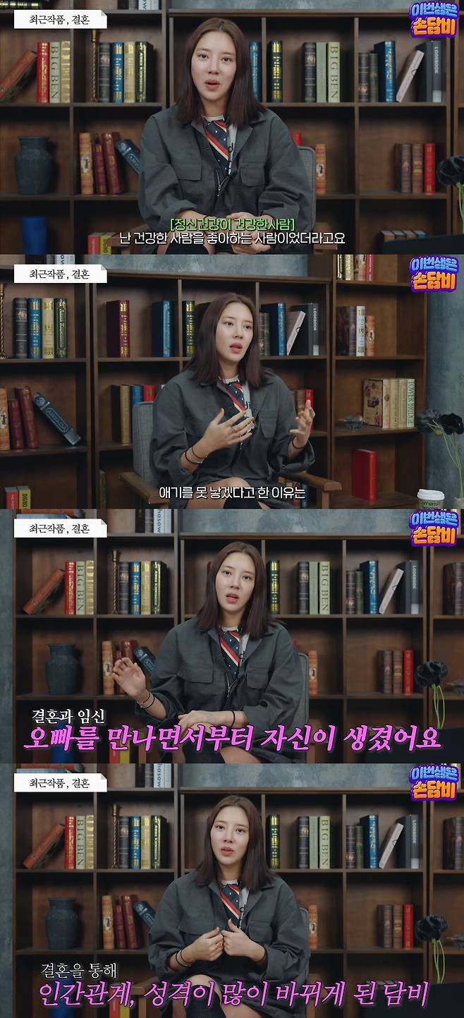 이어 "마지막 예능 했을 때도 엄마랑 예능 했는데 아기를 못 낳겠다고 한 이유는 나의 상처, 트라우마가 있어서 자신이 없었다. 근데 오빠를 만나면서부터 자신이 생겼다. 사실 내가 어떻게 보면 지금 일을 제일 안 하게 됐는데 성격상 제일 불안해야 하는데 생각이 아예 바뀌었다"며 "제일 많이 바뀐 건 인간관계, 성격이 많이 바뀌었다. 진짜 걱정도 많고 소심하고 러프할 것 같지만 안에 들여다보면 정말 좁다. 하지만 결혼하고 나서 많이 바뀐 것 같다. 요즘 쉬면서 많이 느끼는 건 '조급해하지 말고 때를 기다리자'로 많이 바뀌었다"고 밝혔다.
