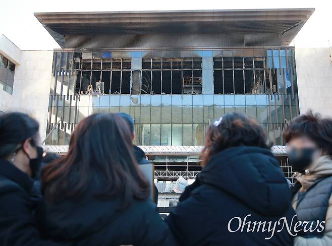 30여 분간 내부를 살펴본 50대 희생자 가족 이아무개(45)씨는 사용승인 준공 건축물로 도저히 보기 어렵단 표정을 지었다. "도대체 왜 승인이 난 건지 모르겠다"라며 참담함을 드러낸 그는 "(화재)감시자만 있었다면 현장에서 생존할 수 있었을 것"이라며 눈물을 쏟아냈다.
