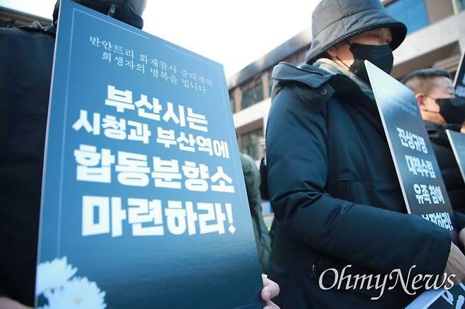 반복되는 참사 재발을 막아야 한다는 목소리도 나왔다. 중대재해없는세상만들기 부산운동본부 이영훈 신부, 강기영 공동집행위원장은 "공기에 쫓긴 기업이 여러 작업을 밀어붙이다 탈출로가 막혀 노동자들이 죽어갔던 한익스프레스 이천 물류센터 화재와 똑같은 일이 벌어졌다"라며 달라지지 않은 현실을 질타했다.