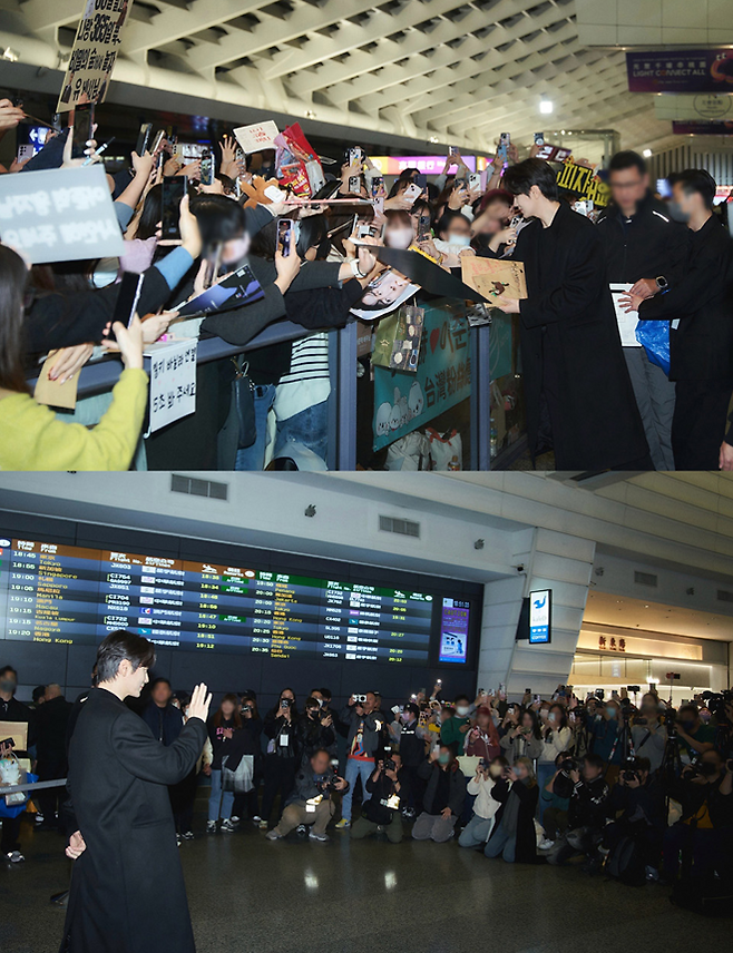 이준혁이 도착한 타오위안 국제공항에는 500여 명의 팬이 운집해 그를 환영했다.