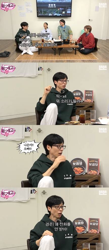 유재석은 "경은이가 '나은아! 오빠!' 막 그러는 거다. 경은이가 '오빠 왜 전화를 안 받냐' 묻길래 잤다니까 '왜 잠을 자냐, 갑자기'라고 그러더라"라고 당시를 회상했다.