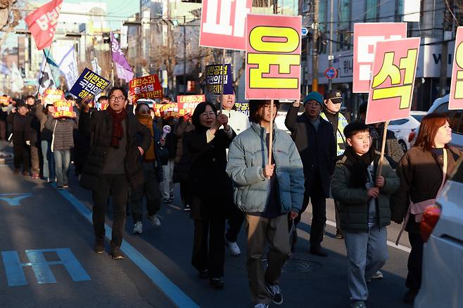 진주시민들이 또 '윤석열 파면'을 외치며 거리에 나섰다.