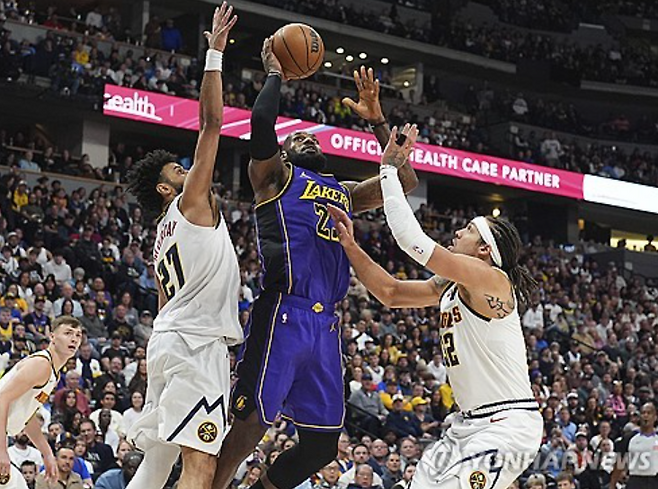 후반 들어 레이커스의 기세가 이어졌다. 자말 머레이와 마이클 포터 주니어, 애런 고든에게 연속 8실점하며 위기를 맞은 것도 잠시였다. 하치무라, 돈치치의 외곽포로 급한 불을 끈 레이커스는 르브론의 득점으로 다시 달아났다. 리브스도 연이어 3점슛을 꽂았다. 3쿼터가 종료됐을 때 점수는 96-87, 여전히 레이커스가 앞섰다.
