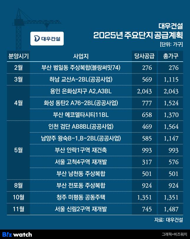 대우건설이 올해 수도권과 부산을 중심으로 1만6000여가구 공급에 나선다. 서울 신림2구역 등 수도권에선 1000가구 이상 대단지 분양을 속속 앞두고 있다. 경기도 하남 교산, 남양주 왕숙 등 3기 신도시 본청약도 추진한다.