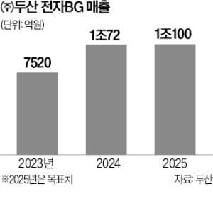 두산 전자BG는 지난해 사상 최대인 1조72억원의 매출을 기록했다. 같은 기간 ㈜두산의 전체 영업이익은 1411억원으로, 이 중 전자BG가 차지한 영업이익은 밝히지 않았다. AI산업이 급성장하면서 두산의 전자 사업 실적이 올해 크게 개선될 것이란 전망이 나온다. ㈜두산은 AI 가속기 매출이 늘어나기 전인 지난해 11월 올해 매출을 1조100억원으로 설정했지만, 업계는 올해 실제 매출은 이보다 클 것으로 보고 있다.