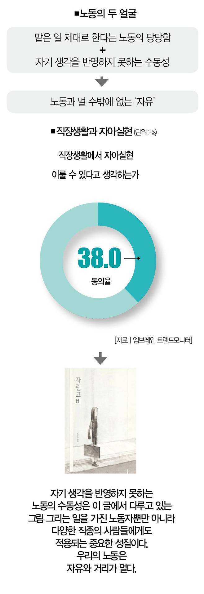 우리의 노동은 이처럼 자유와 거리가 멀다. 내 마음대로 할 수 있는 것이 생각보다 적다. 노동의 현장이 그렇고 우리의 삶이 그렇다. 그래서 우리는 자유가 아닌 진정한 자유를 목말라한다. 그곳에 잠시 쉬고 싶어 하는지 모른다. 잠시라도 여행을 떠나고 싶은 이유는 이런 데 있는지 모른다.