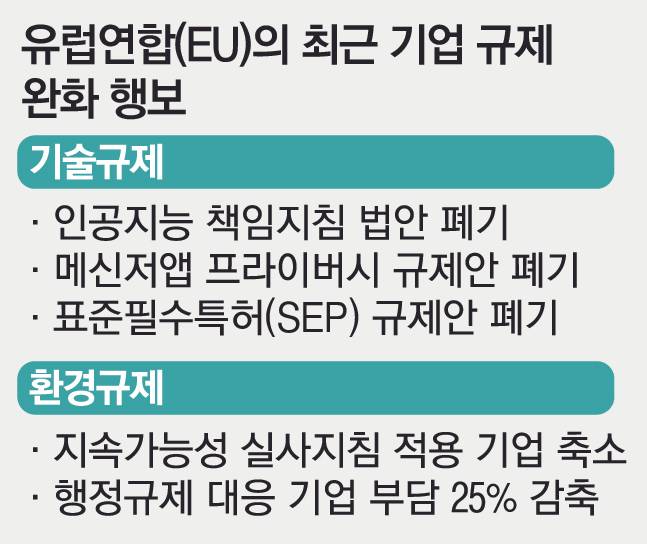이어 EU 집행위는 이달 초 기술 특허, AI 책임, 메신저 애플리케이션 사생활 보호 등 기술 규제 관련 3개 법안의 초안을 폐기한 바 있다.
