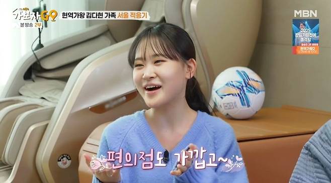 김다현은 서울살이에 대해 "처음엔 좋기만 할 줄 알았는데, 공기가 너무 답답했다. 차에 있는 시간도 더 늘어나니까 불편한 점도 있는데, 아무래도 교통이 편리하고 편의점도 가까우니 좋다"고 밝혔다. 김다현 엄마는 바쁜 딸을 지켜본 심정에 대해 "대견하기도 하고 짠할 때도 있다. 어릴 땐 손이 많이 갔는데, 지금은 본인이 미리 준비한다"고 장하게 생각했다.