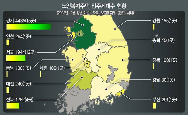 2023년 노인실태조사에 따르면, 독립적 일상생활이 가능한 노인 가운데 ‘거주 환경이 더 좋은 집’으로 이사하고 싶다는 비중은 8.1%, ‘식사, 생활 편의 서비스가 제공되는 노인전용주택’으로 이사하고 싶다는 이들은 4.7%였다. 조사 시점의 전체 노인 973만명 중 약 125만명(12.8%)이 노후를 보내기 적합한 곳으로 이사할 의향이 있는 셈이다.