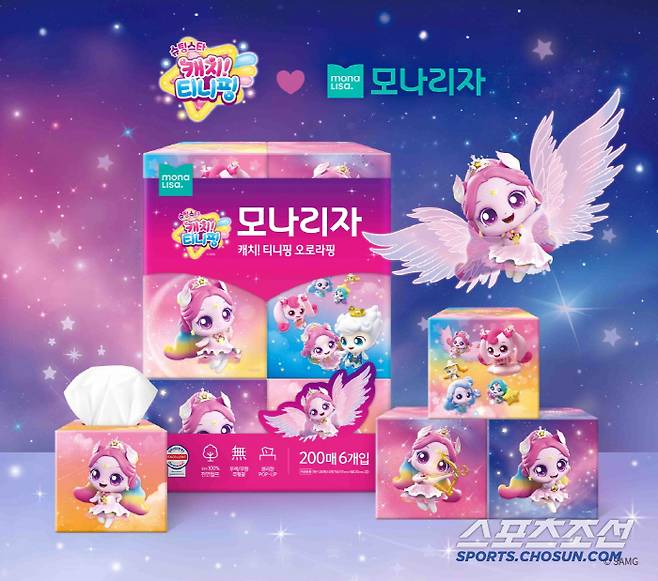 모나리자가 SAMG엔터 '캐치! 티니핑' 시리즈의 인기 캐릭터 '오로라핑'과 콜라보한 미용티슈 신제품 '캐치! 티니핑 오로라핑 미니'를 출시했다.