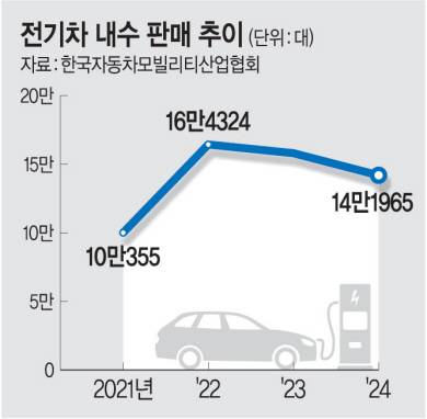 24일 한국자동차모빌리티산업협회에 따르면 지난해 내수 신차 판매는 162만6245대로 전년 동기(173만9249대) 대비 6.5% 감소했다. 동력원별로 보면 전기차는 지난해 14만1965대가 팔려 전년 동기(15만8009대)와 비교해 10.2% 줄었다. 반면 같은 기간 하이브리드차는 37만6603대에서 49만5577대로 31.6% 증가했다.