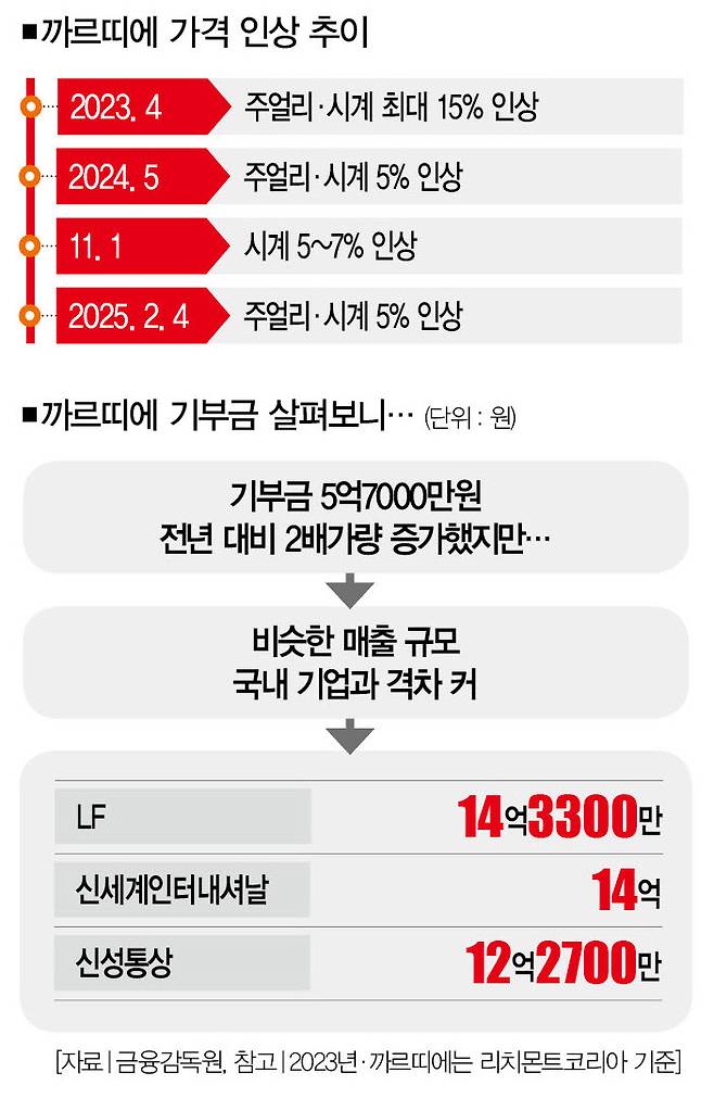 ![프랑스 명품 주얼리 브랜드 '까르띠에'가 1년에 수차례씩 가격을 인상하고 있다.[사진|뉴시스]](https://img1.daumcdn.net/thumb/R658x0.q70/?fname=https://t1.daumcdn.net/news/202502/24/thescoop1/20250224092249203jfna.jpg)