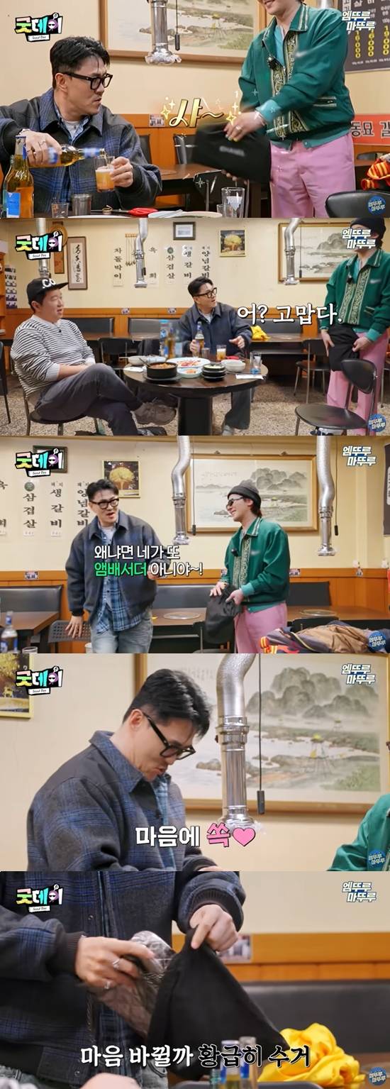 앞서 지난 16일 방송된 '굿데이' 1회에서 지드래곤은 데프콘에게 자신이 글로벌 앰버서더로 활동 중인 명품 C사의 가방을 선물로 건넸다.