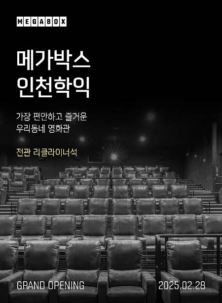 메가박스, '전 좌석 리클라이너' 인천학익점 28일 오픈