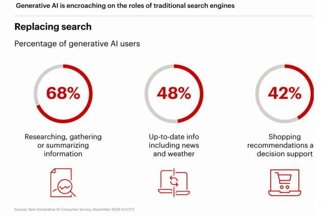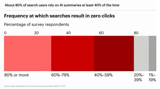 베인앤컴퍼니(Bain & Company)의 보고서에 따르면, 소비자의 약 80%가 검색 시 40% 이상을 AI 기반 검색 결과에 의존하는 것으로 나타났다.