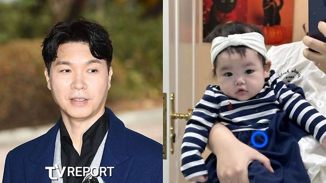 올린 사진에는 집으로 보이는 곳에서 박수홍의 딸 재이가 네이비 원피스에 흰색 머리띠를 착용해 러블리함을 부각했다. 똘똘한 눈과 귀여운 볼살은 귀여움을 더했다. 특히 박수홍과 아내 김다예를 닮아 예쁜 모습의 재이 양이 시선을 모았다.