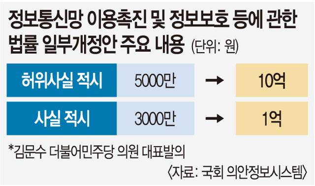 개정안은 이를 예방하기 위해 공공연하게 허위사실을 드러낸 경우 10억원 이하의 벌금형에 처할 수 있도록 벌금 상한액을 높였다. 기존 최고 벌금액은 5000만원이었다. 또 유죄로 인정될 경우 위반행위와 관련해 취득한 금품이나 그 밖의 이익을 전부 몰수하도록 했다.