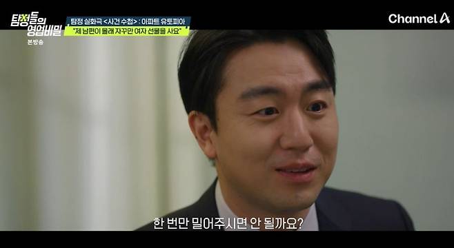 24일 채널A ‘탐정들의 영업비밀’에선 ‘아파트 유토피아’란 부제로 남편의 외도를 의심하며 탐정단을 찾은 아내의 사연이 그려졌다.