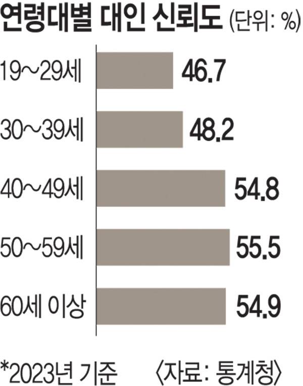 “못 믿겠다” 국민 신뢰도 2년 연속 추락… 2030 불신 더 커