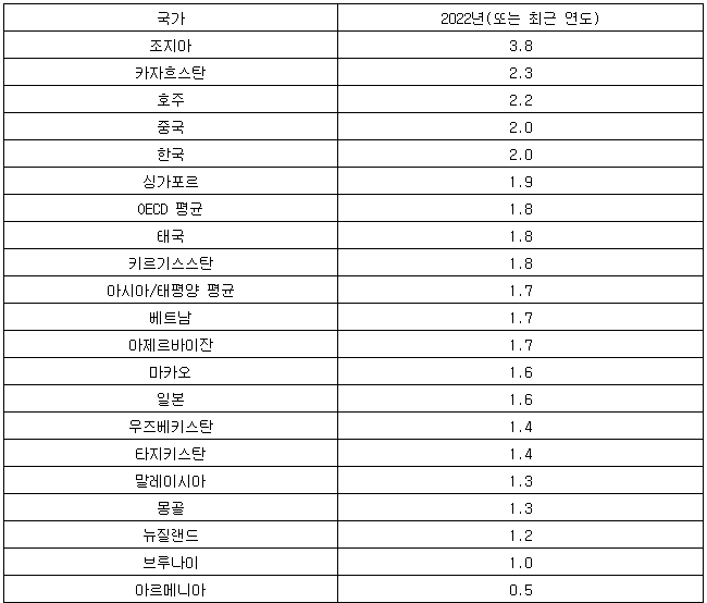 ※ OECD의 '한눈에 보는 사회: 아시아/태평양 2025' 보고서에서 수치 발췌.