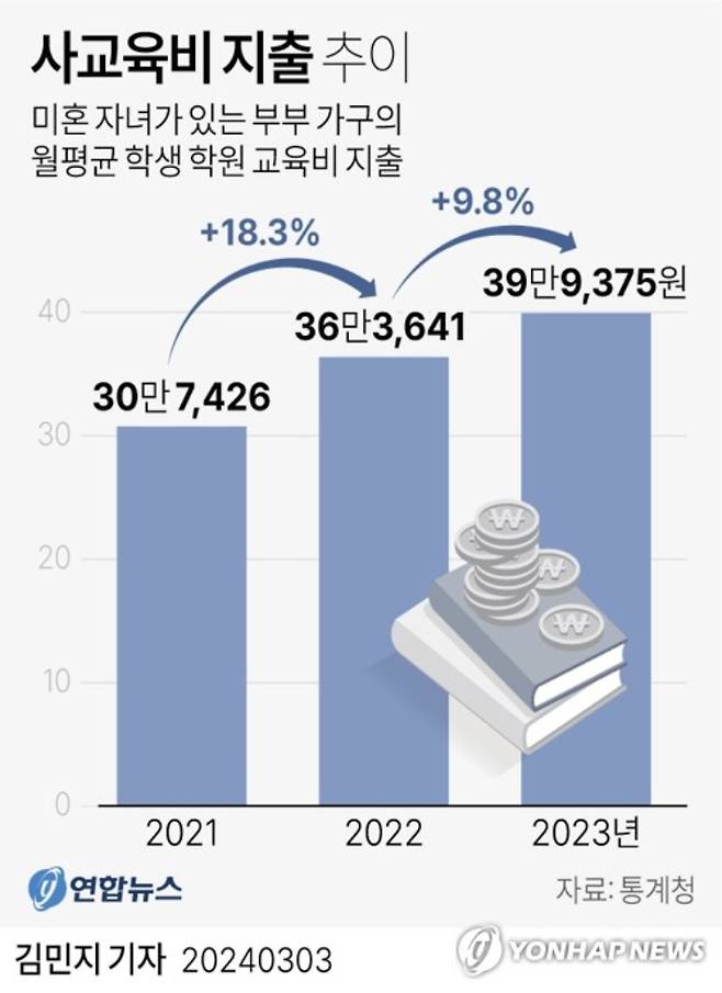 ◆ 이혜인> 사교육 시장은 사교육 시장의 전체 규모 자체는 사실 2023년 기준으로 27조 원으로 같은 해에 현대자동차, 그리고 기아자동차 영업이익을 뛰어넘었다고 하더라고요.