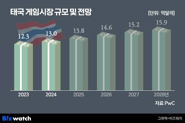 국내 게임사들이 이처럼 태국 시장에 높은 관심을 보이는 배경은 간단하다. 시장 성장성이 기대되고 자사 게임 IP가 이미 인기를 끌고 있어서다. PwC에 따르면 2023년 태국 게임 시장은 12억3300만달러(약 1조7600억원) 규모에 달하고, 오는 2028년 15억8700만달러(약 2조2700억원)에 이를 전망이다.