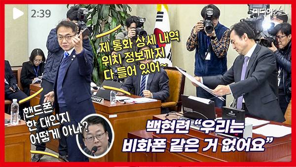 그러자 박선원 의원 건너편에 앉아 있던 곽규택 국민의힘 의원이 “아니 핸드폰을 한 대만 쓰는지 여러 대를 쓰는지 어떻게 알아요? 그거만 보고 어떻게 알아요?”라고 다시 꼬투리를 잡았다. 이에 백혜련 민주당 의원이 “우리는 비화폰 같은 거 없다”고 비꼬았다.