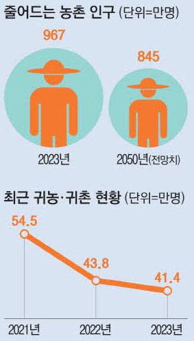 현재 농촌은 인구 감소와 고령화로 소멸 위기에 직면해 있다. 농식품부에 따르면 최근 3년간 귀농·귀촌 인구는 2021년 54만5000명에서 2022년 43만8000명, 2023년 41만4000명으로 줄어들어 2년간 약 13만명이 감소했다.