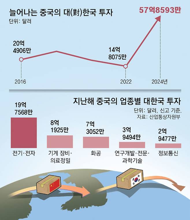 ● 1년 만에 4배로 늘어난 중국의 대한국 투자