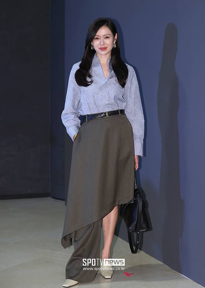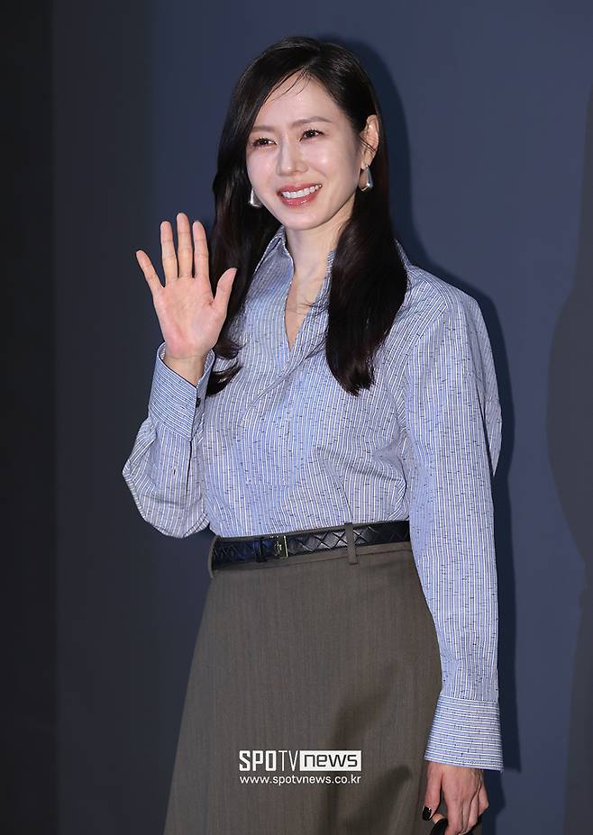 손예진은 하늘색 스트라이프 셔츠와 치마와 바지가 합쳐진 원 레그 팬츠룩으로 취재진의 시선을 사로잡았고, 43세라는 나이기 믿기지 않는 청초한 미모를 뽐냈다.