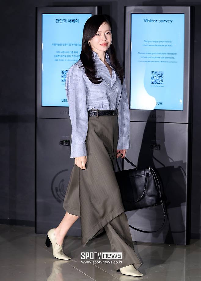 배우 손예진이 25일 서울 용산구 한남동 미술관에서 진행된 브랜드 행사에 참석해 포즈를 취하고 있다.