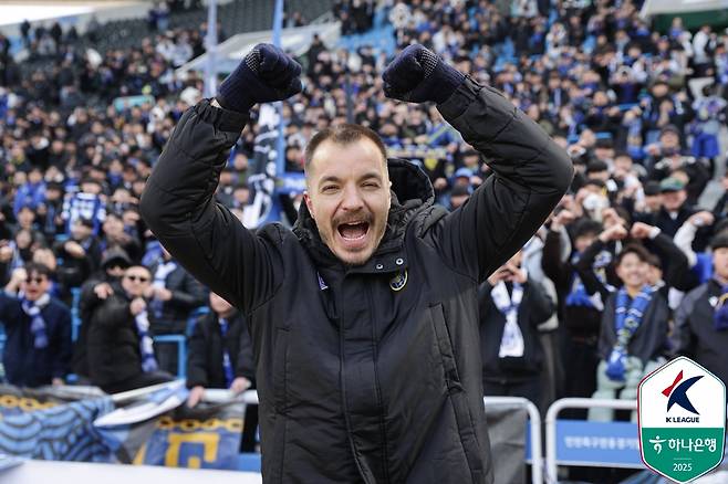 무고사는 22일 오후 2시 인천축구전용경기장에서 열린 하나은행 K리그2 2025 1라운드 경남FC와 홈 경기에 선발 출전해 선제골을 넣었다. 감각적인 로빙슛으로 첫 득점을 책임진 무고사의 활약과 더불어 김성민의 추가골이 나온 인천은 경남을 2-0으로 잡고 홈 팬들에게 승리를 선물했다.