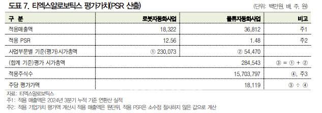 티엑스알로보틱스 관계자는 “합병 과정에서 일회성 비용이 발생했을 뿐만 아니라, 수익성이 상이한 로봇사업과 물류사업이 결합돼 단순히 순이익을 기준으로 기업 가치를 평가하면 왜곡 가능성이 크다”며 “주관사와 충분한 논의를 거쳐 PSR 방식을 선택했다”고 강조했다.