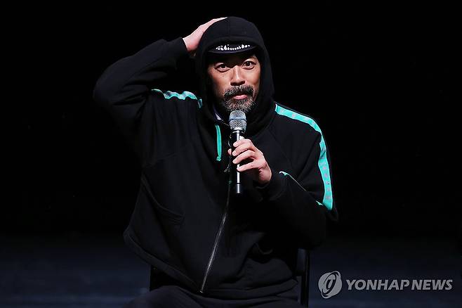 (서울=연합뉴스) 진연수 기자 = 26일 오후 서울 서초구 예술의전당 CJ토월극장에서 열린 현대무용단 앰비규어스댄스컴퍼니 15주년 기념 공연 '바디콘서트' 프레스콜에서 김보람 예술감독이 인사말을 하고 있다. 2025.2.26