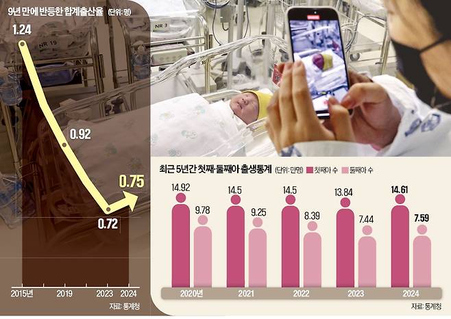 2015년부터 줄곧 내리막길을 걷던 합계출산율이 지난해 0.75명을 기록하며 9년 만에 반등했다.