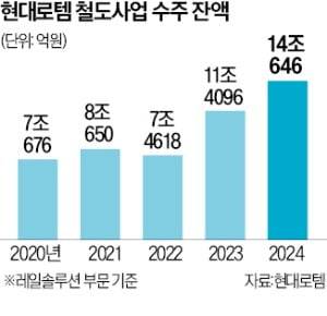 이번 수주는 지난해 전체 매출의 61%가 넘는 금액으로, 현대로템의 철도 사업 단일 프로젝트로는 최대 규모다. 지금까지 대규모 수주는 납품 중인 호주 NIF 2층 전동차(1조4000억원)와 지난해 수주한 호주 퀸즐랜드 전동차(1조3000억원), 미국 로스앤젤레스 메트로 전동차(9000억원) 사업 등이다. 잇단 수주로 2020년 7조676억원이던 현대로템의 철도사업(레일솔루션) 부문 수주잔액은 지난해 말 14조646억원으로 약 두 배로 늘었다.