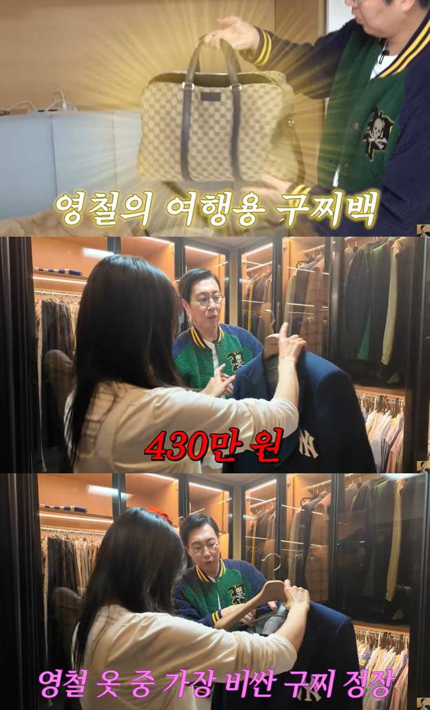 또한 명품 브랜드 구찌 마니아인 김영철은 65만원짜리 부채부터 여행용 가방, 그리구 무려 430만원짜리 정장까지 다양한 구찌 제품을 소유해 눈길을 끌었다.
