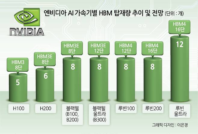 내년에는 엔비디아의 AI 가속기 흐름이 블랙웰에서 루빈으로 옮겨가면서 주력 HBM 세대도 HBM3E에서 HBM4로 이동할 전망이다.