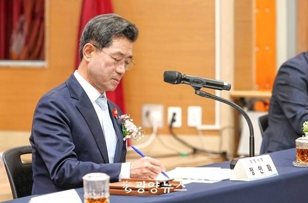 정 시장은 지난 20일 다압면 시민과의 대화에 참석해 마무리 발언 도중 참석한 공무원들에게 '신속한 일 처리'를 강조했다.