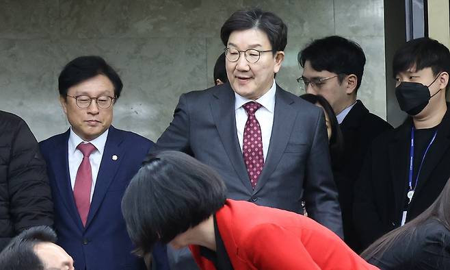 | ▲ 권성동 국민의힘 원내대표가 27일 오전 서울 여의도 국회에서 열린 의원총회에 참석하고 있다. |